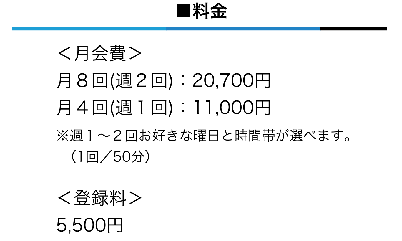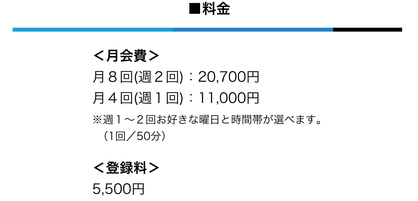 ◯ 月額11,000円、1回あたり2,750円でセミパーソナルが受けられる! 他社との比較をみる▶ |
