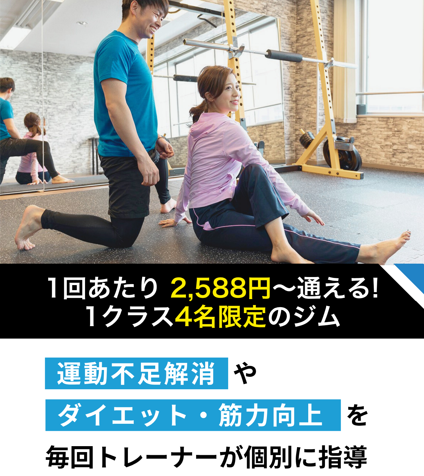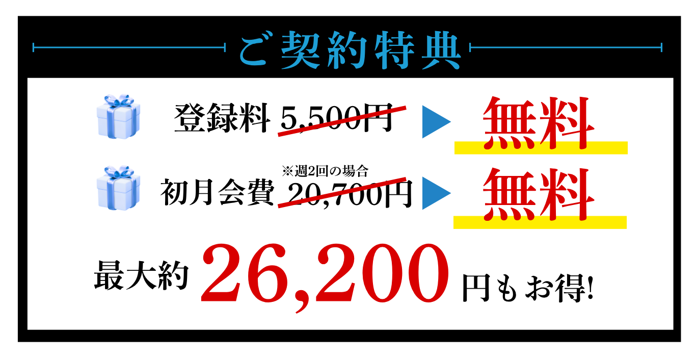 ◯ 月額11,000円、1回あたり2,750円でセミパーソナルが受けられる!